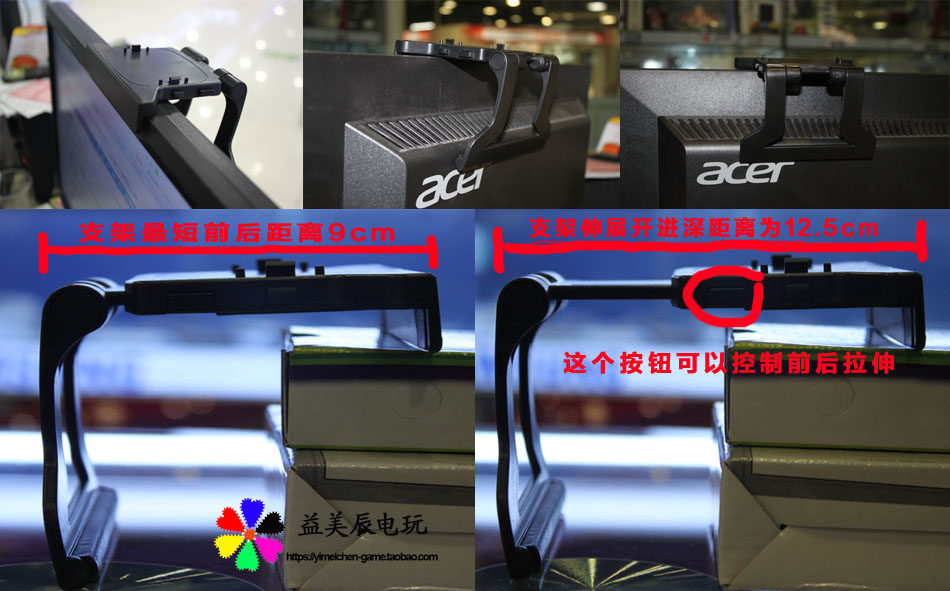支架的外觀,可以把體感器卡到電視或是顯示器上。