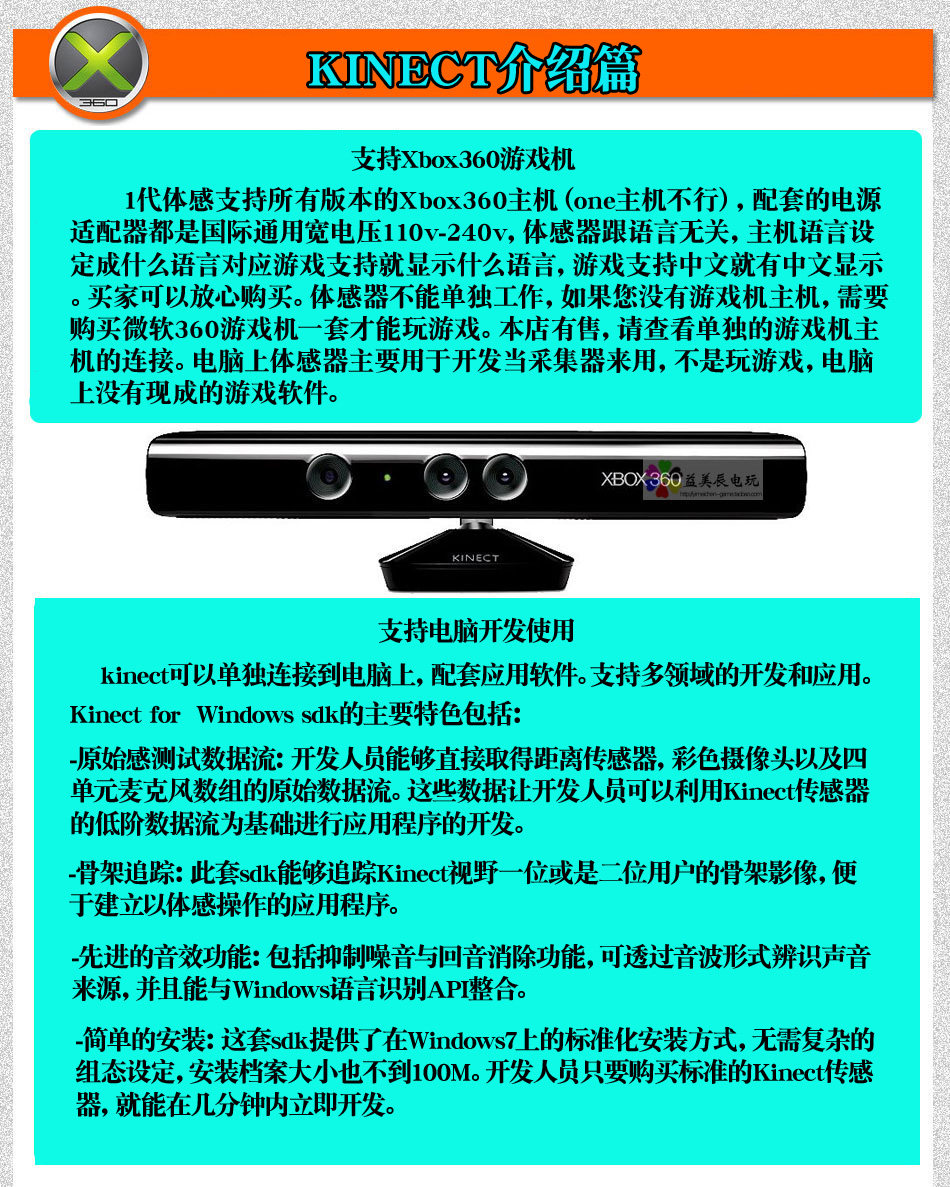 微軟XBOX360 體感器 kinect for windows(360或pc開發(fā))包郵推廣熱賣行情