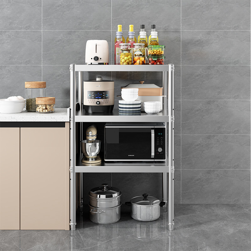加厚不銹鋼貨架三層廚房飯店商用倉儲雜物收納鍋架置物架落地定做價格行情