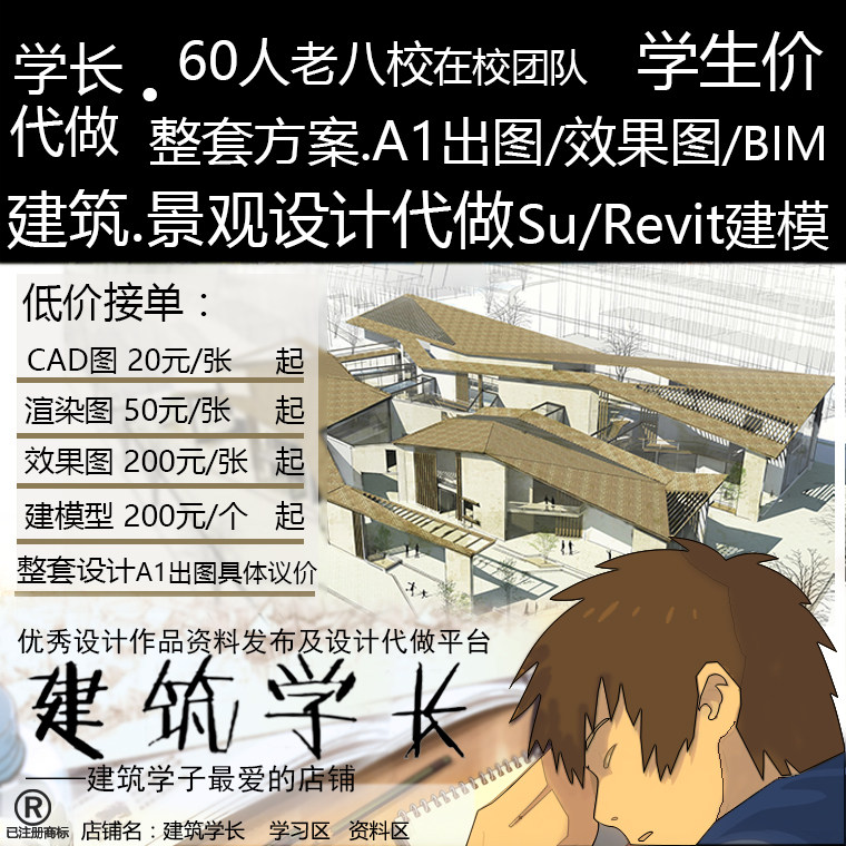建筑景觀設(shè)計(jì)代做Revit/Su/BIM模型代畫CAD效果圖紙室內(nèi) 學(xué)生價(jià)