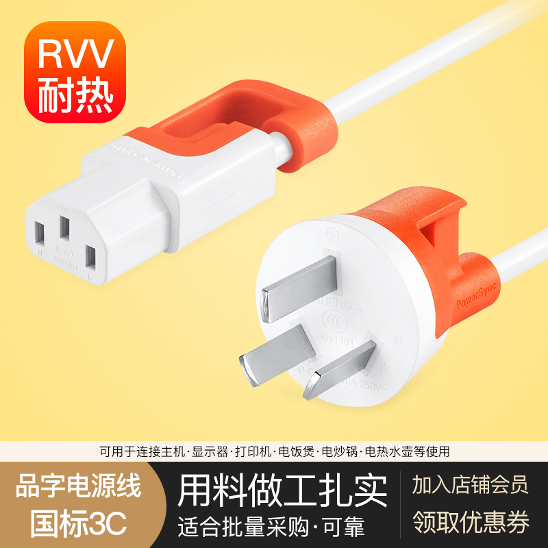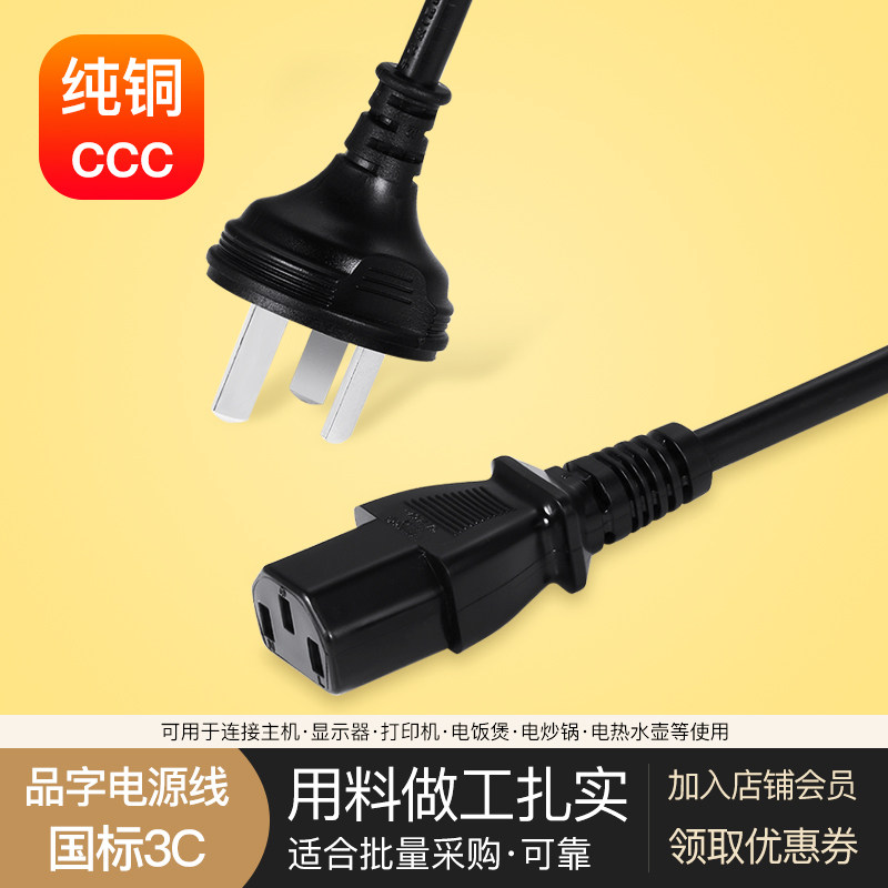電飯煲電水壺臺式電腦主機(jī)電源線三孔顯示器打印機(jī)電飯鍋插頭通用價格行情