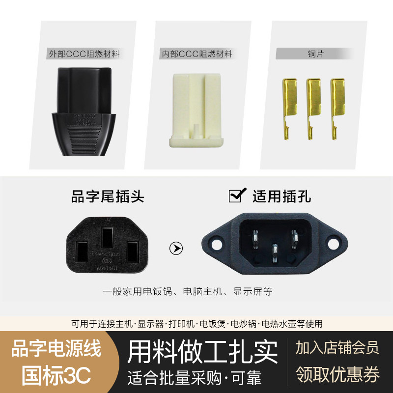 電飯煲電水壺臺式電腦主機(jī)電源線三孔顯示器打印機(jī)電飯鍋插頭通用