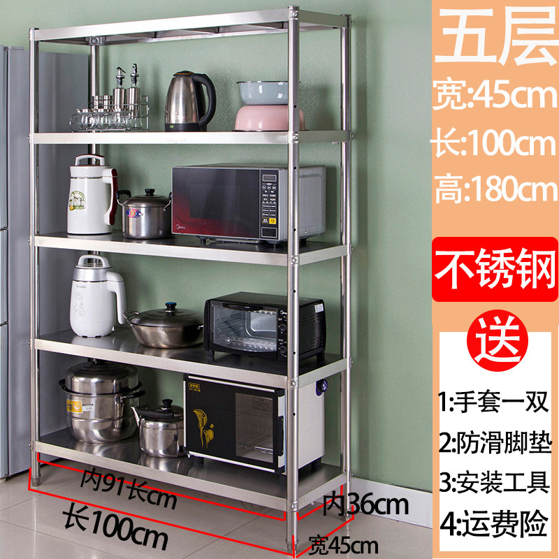 廠銷不銹鋼貨架廚房置物架落地多層收納架微波爐烤箱架五層商用品推廣熱賣行情