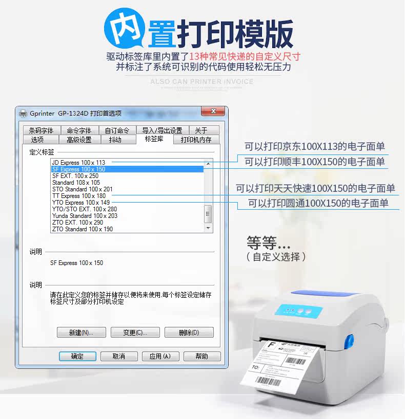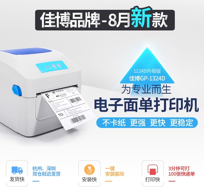 佳博GP1324D電子面單打印機(jī)熱敏快遞單條碼不干膠標(biāo)簽機(jī)E郵寶京東.價(jià)格行情