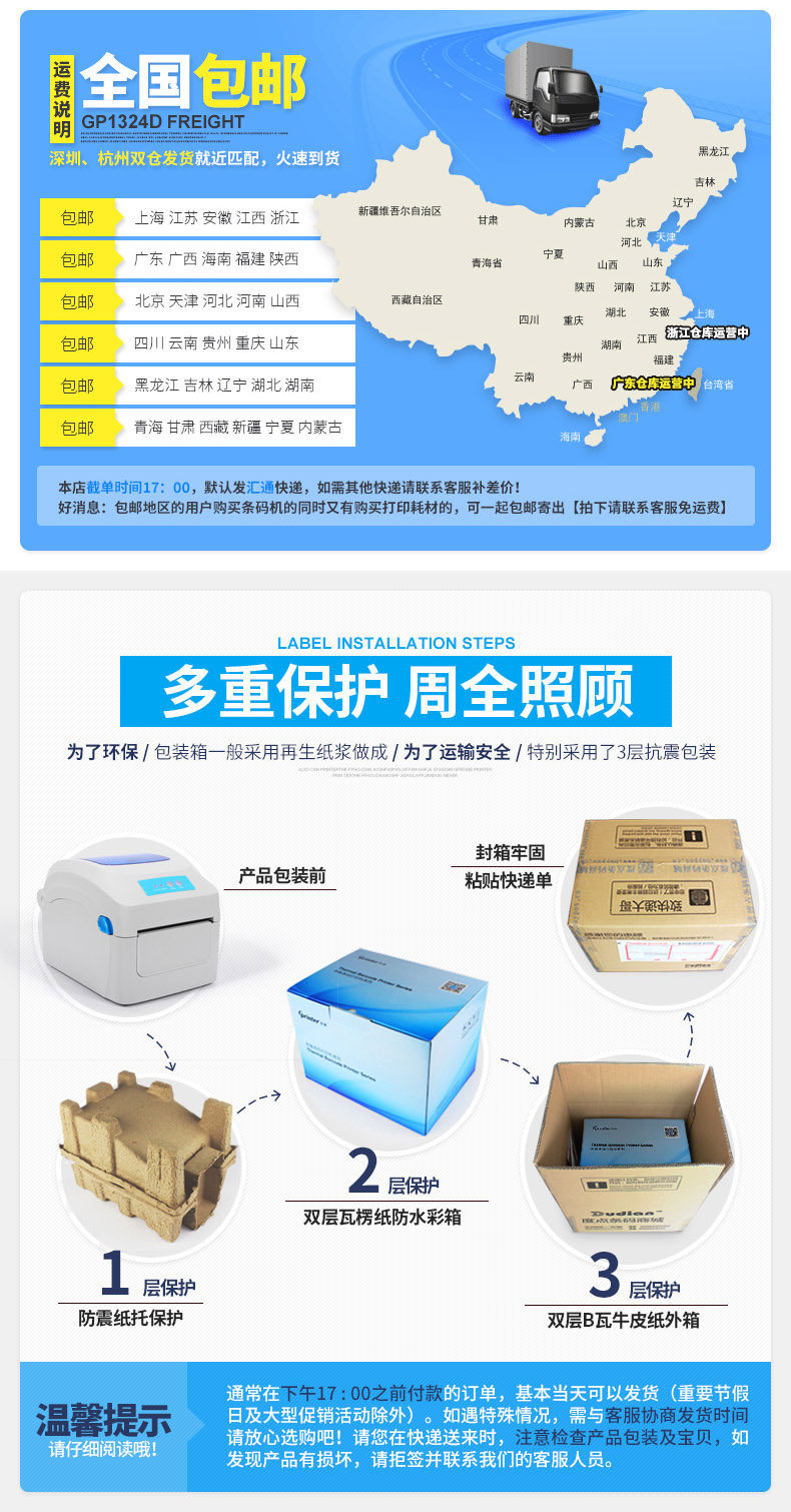 佳博GP1324D電子面單打印機(jī)熱敏快遞單條碼不干膠標(biāo)簽機(jī)E郵寶京東.