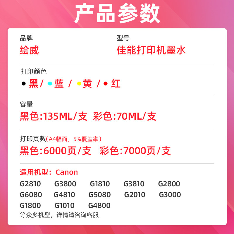 繪威適用佳能打印機(jī)890墨水通用G1800 1810 2800 2810 3800 3810價(jià)格行情