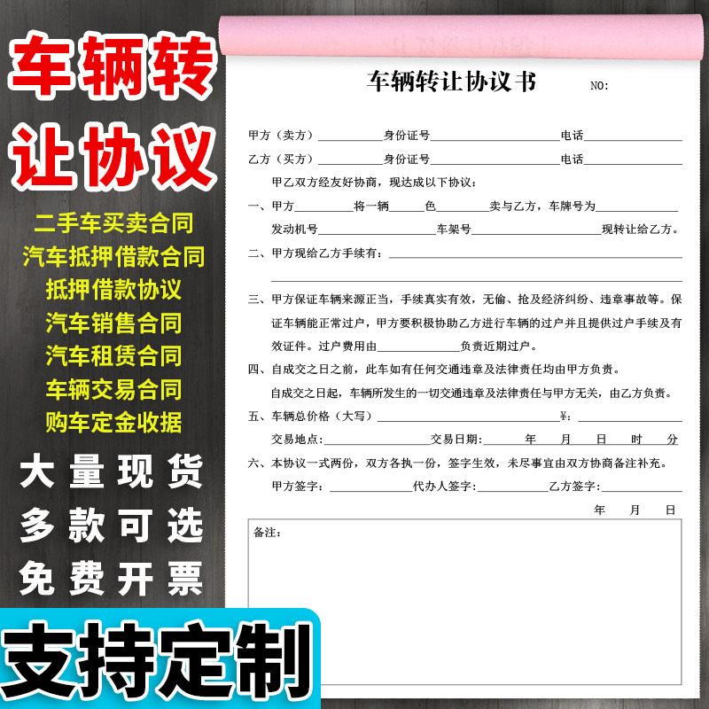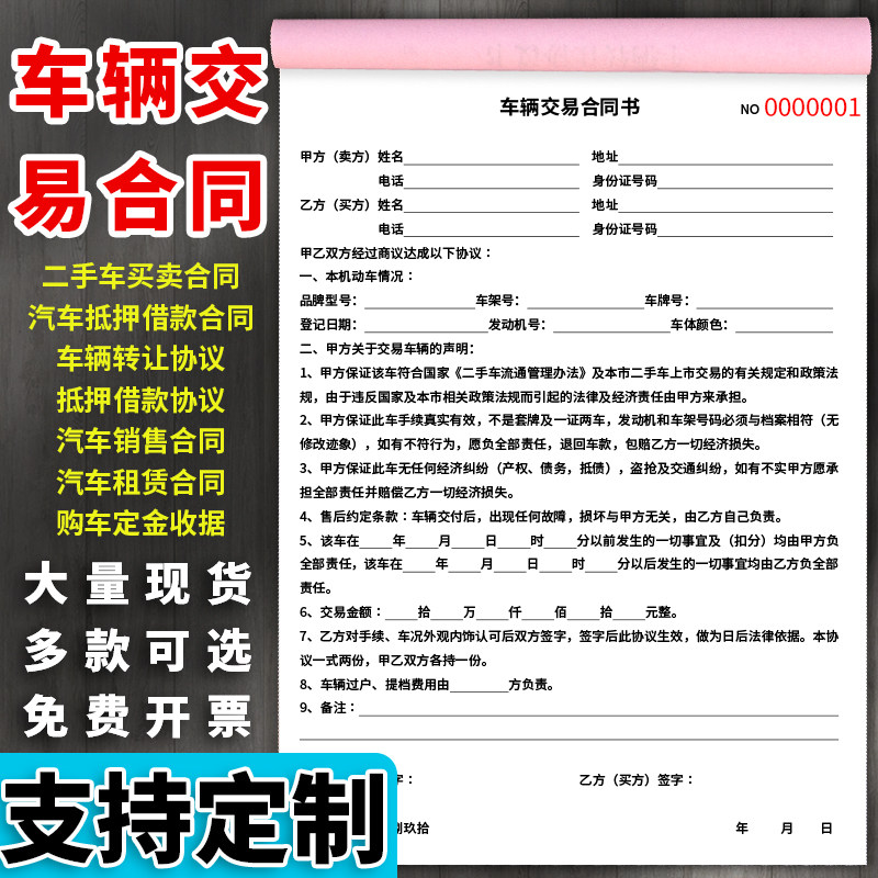 二手車銷售交易合同通用車輛買賣協(xié)議書汽車銷售合同轉(zhuǎn)讓協(xié)議書二三聯(lián)單汽車舊機動車轉(zhuǎn)讓賣車協(xié)議書單據(jù)定制