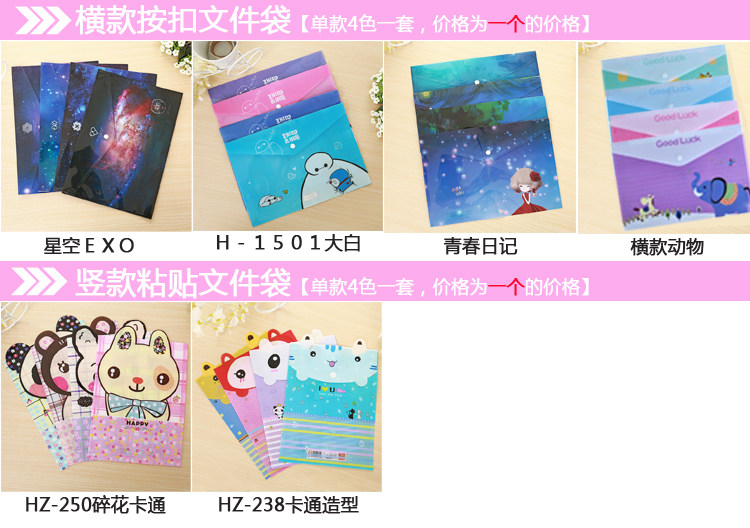 - 顏色分類:HZ-250碎花卡通HZ-238卡通造型豎款動物女孩文件袋星空EXO倫敦控可愛卡通文件袋H-1501大白快樂一族H-1503暗扣文件袋水果系列普拉女孩青春日記