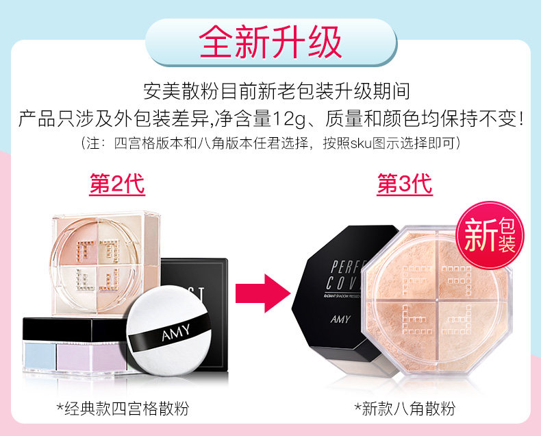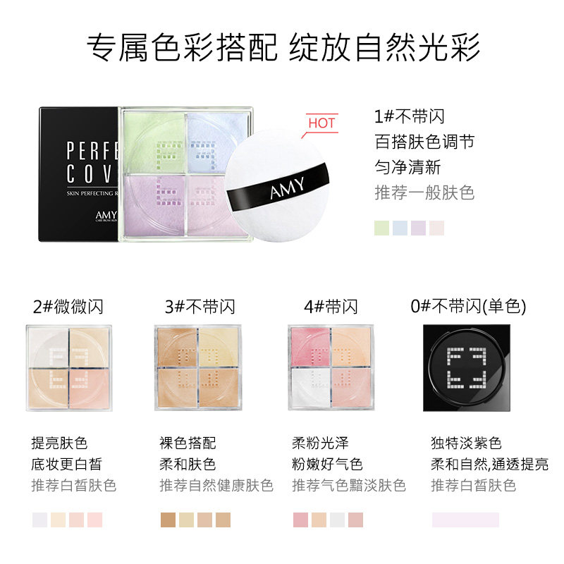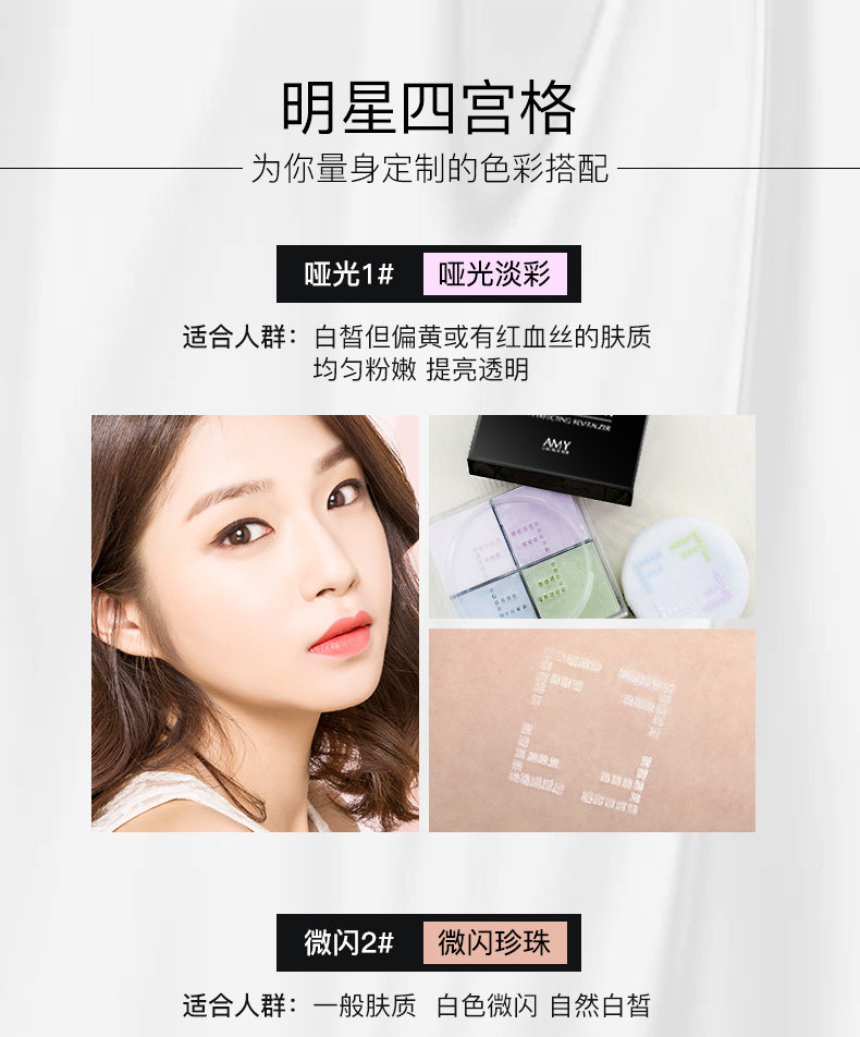 Amy/安美八角四色散粉定妝粉蜜粉餅控油持久遮瑕防水四宮格晚安粉.價(jià)格行情