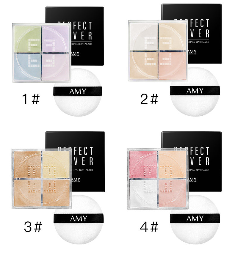 Amy/安美八角四色散粉定妝粉蜜粉餅控油持久遮瑕防水四宮格晚安粉.推廣熱賣行情
