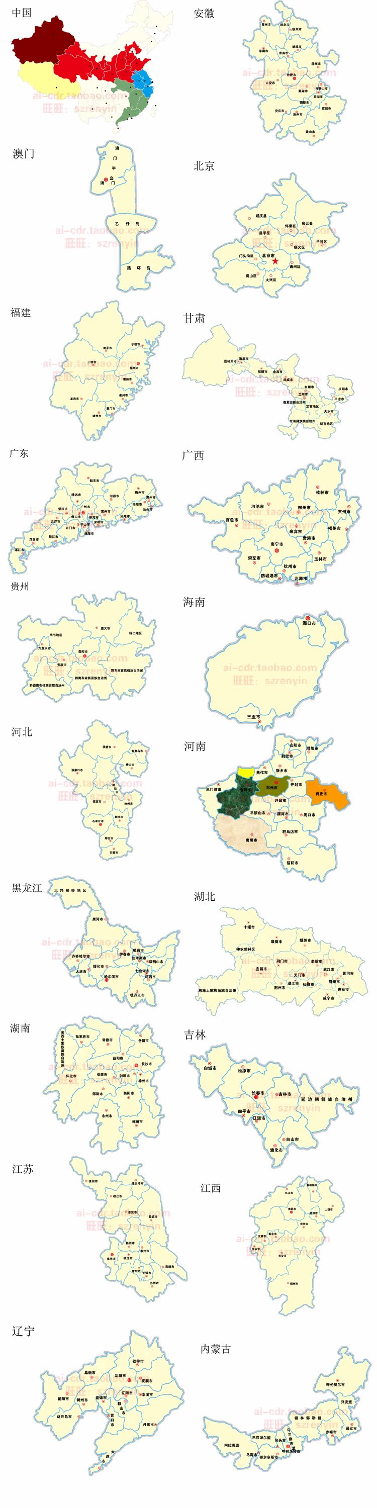 中國地圖及各省地圖區(qū)域劃分AI矢量圖設計素材A714價格行情