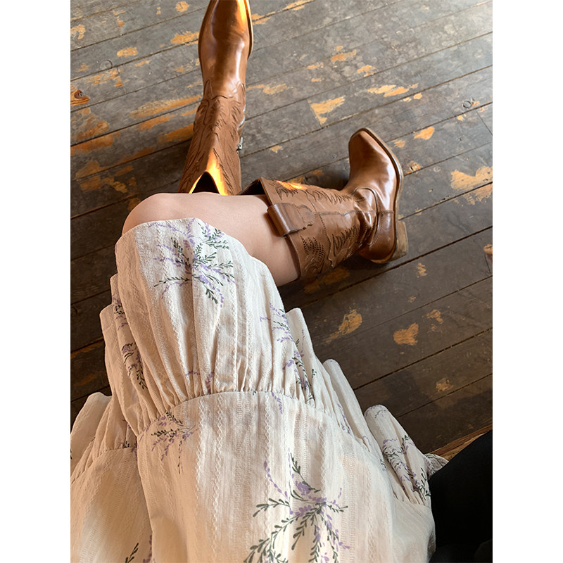 VASSE 法式方領(lǐng)蝴蝶結(jié)碎花連衣裙子女品質(zhì)高感小個子溫柔甜美度假裙