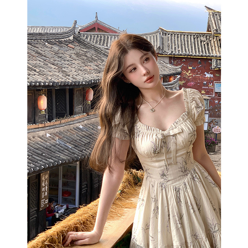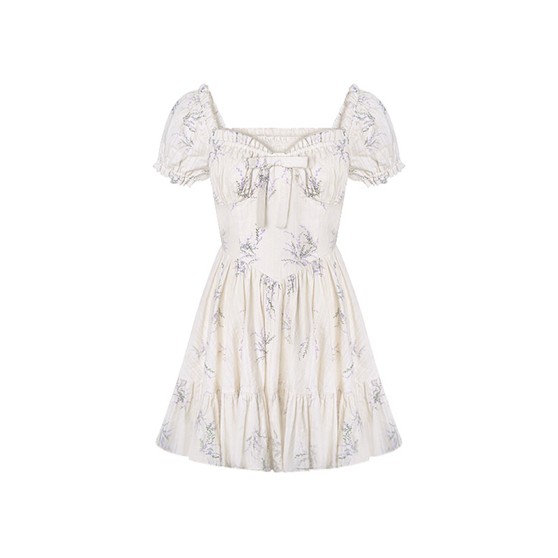VASSE 法式方領(lǐng)蝴蝶結(jié)碎花連衣裙子女品質(zhì)高感小個子溫柔甜美度假裙推廣熱賣行情