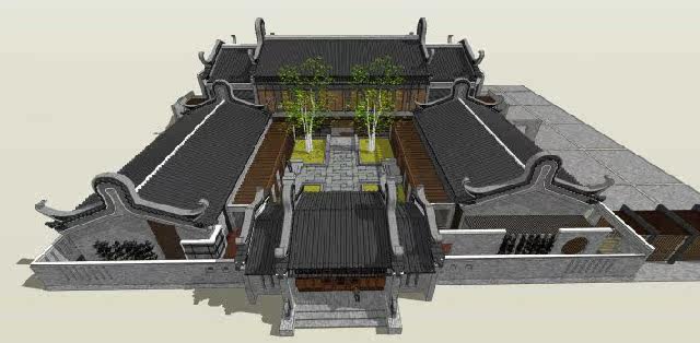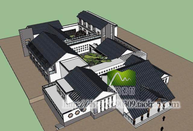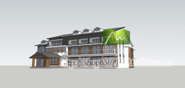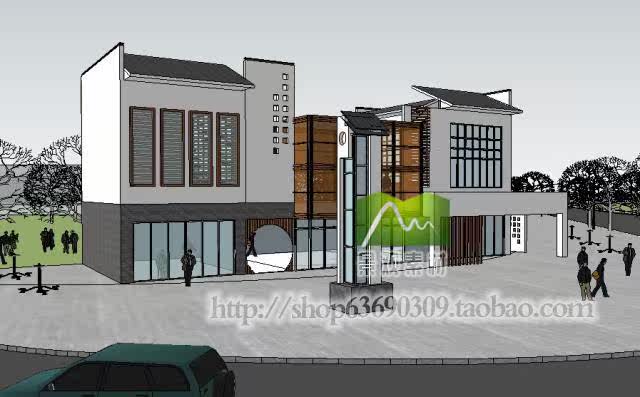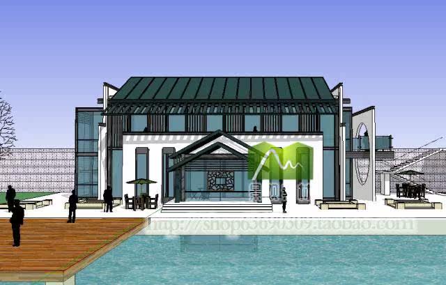 中式會所新現(xiàn)代SU建筑草圖大師精細模型園林景觀Sketchup設計素材
