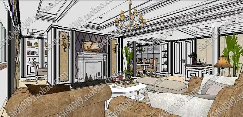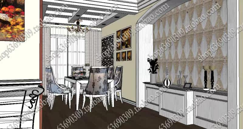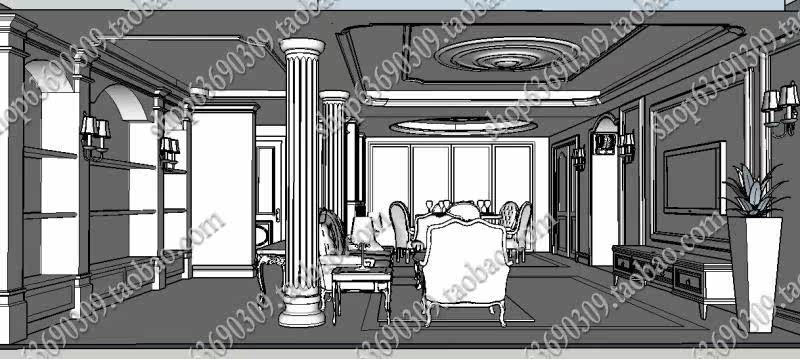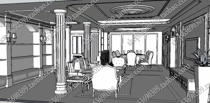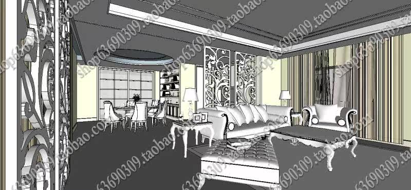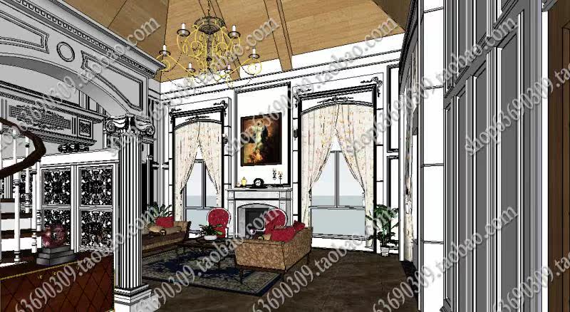 【名稱】:歐式室內SU草圖大師模型