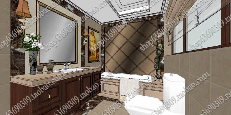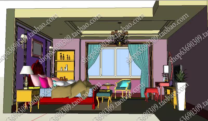 歐式室內SU草圖大師模型環(huán)藝設計臥室客廳餐廳衛(wèi)生間素材資料庫價格行情