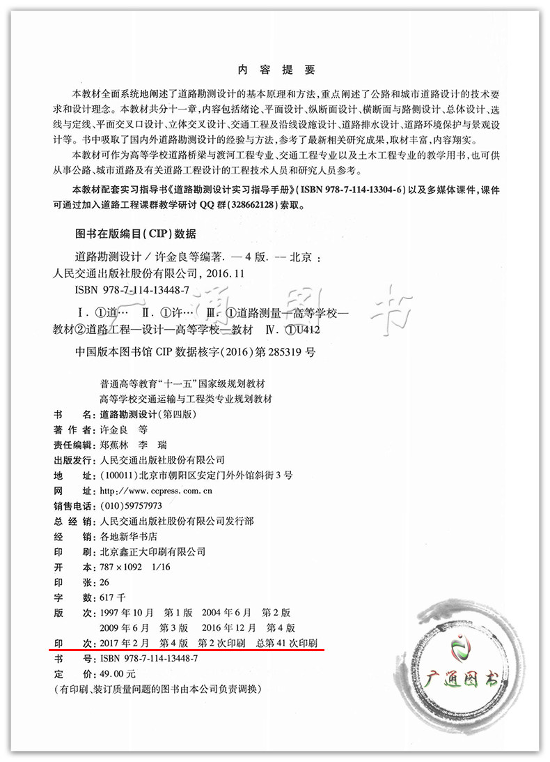 正版全新 道路勘測(cè)設(shè)計(jì)(第四版)許金良等編著 高等學(xué)校交通運(yùn)輸與工程類專業(yè)規(guī)劃教材 人民交通出版社/9787114134487.