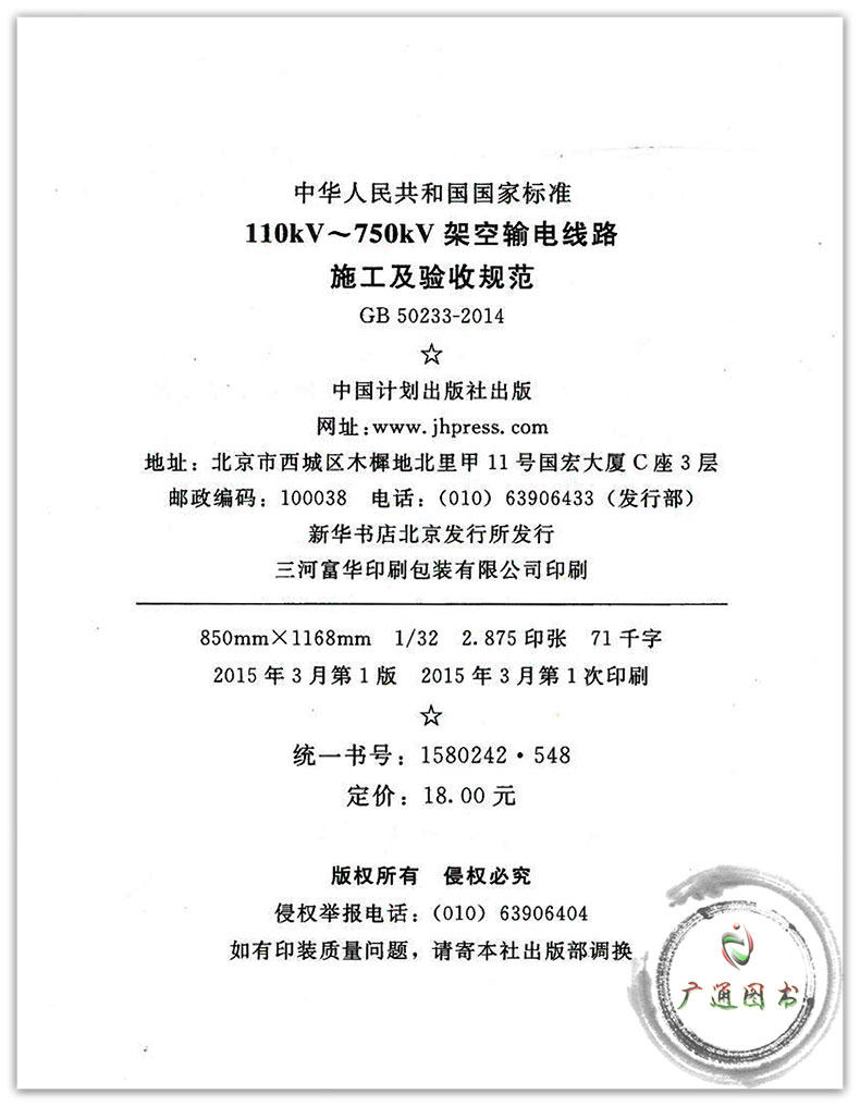 GB 502332014 110kV~750kV架空輸電線(xiàn)路施工及驗(yàn)收規(guī)范.價(jià)格行情