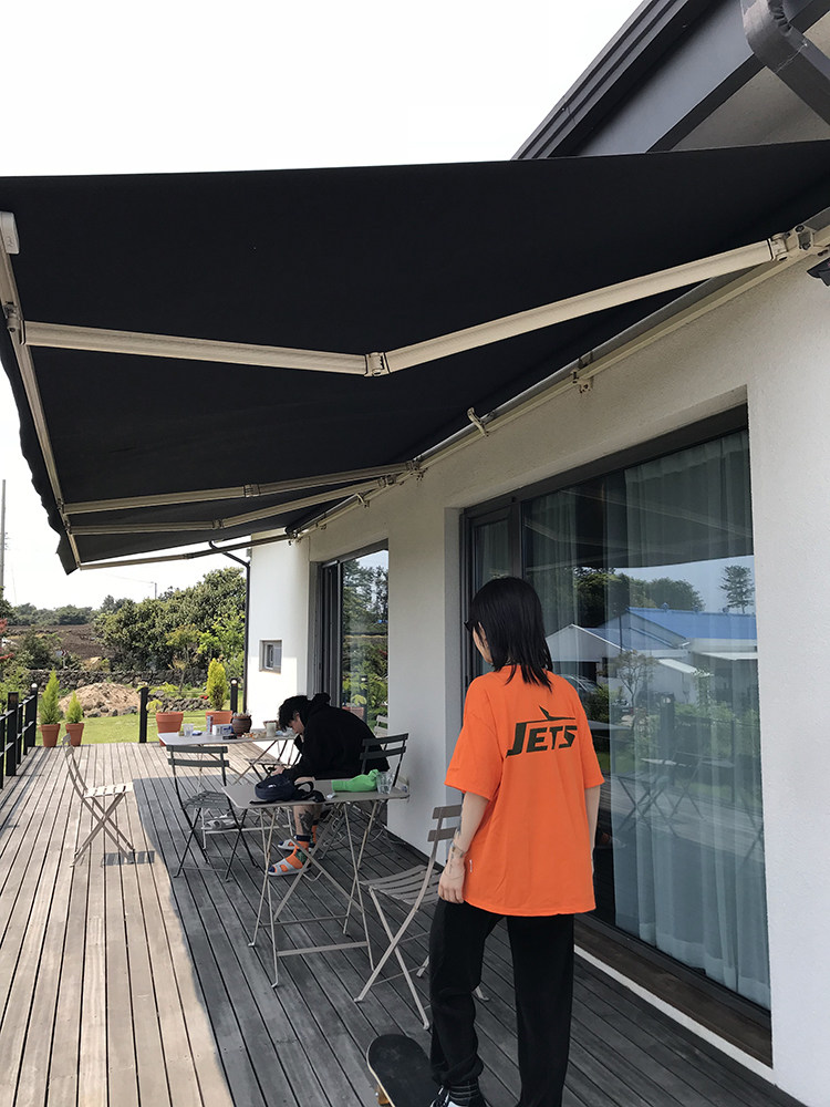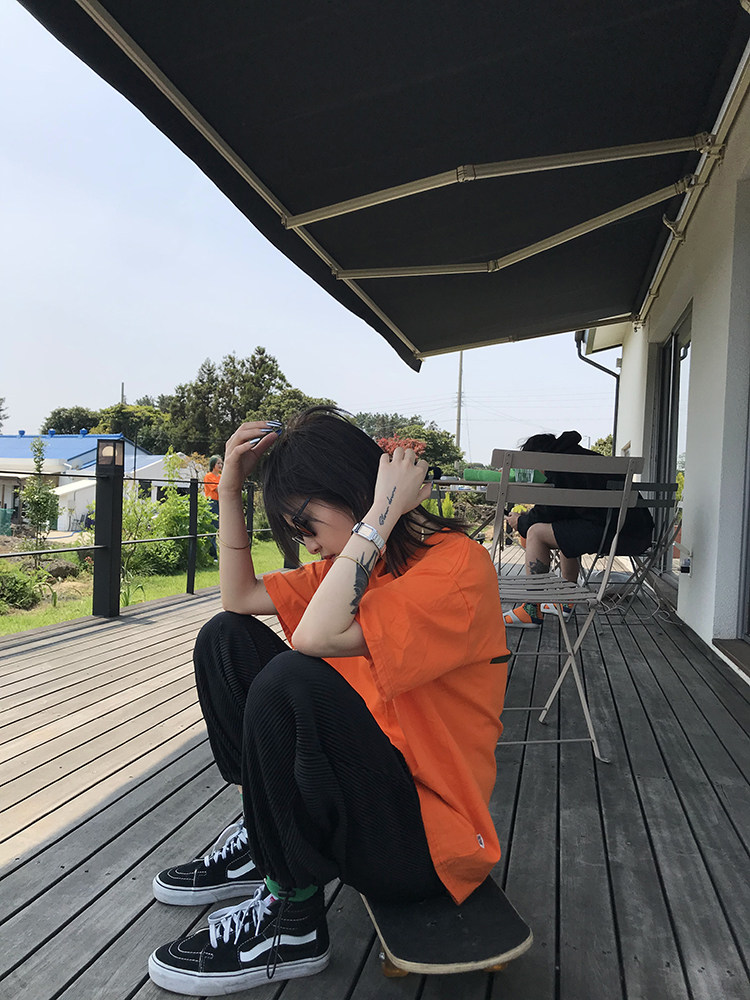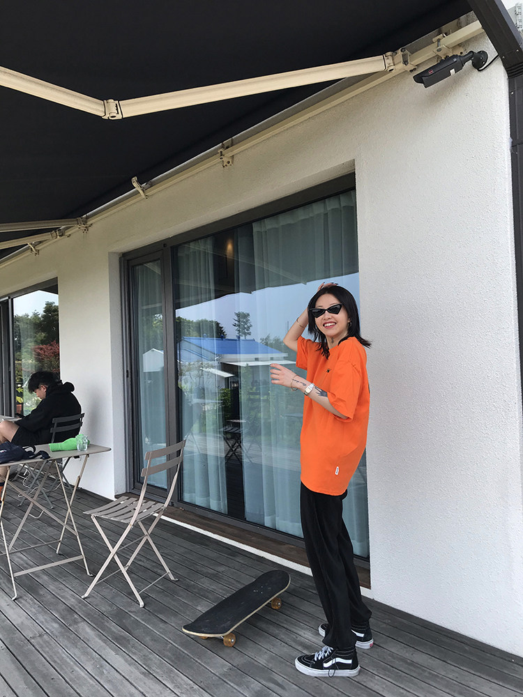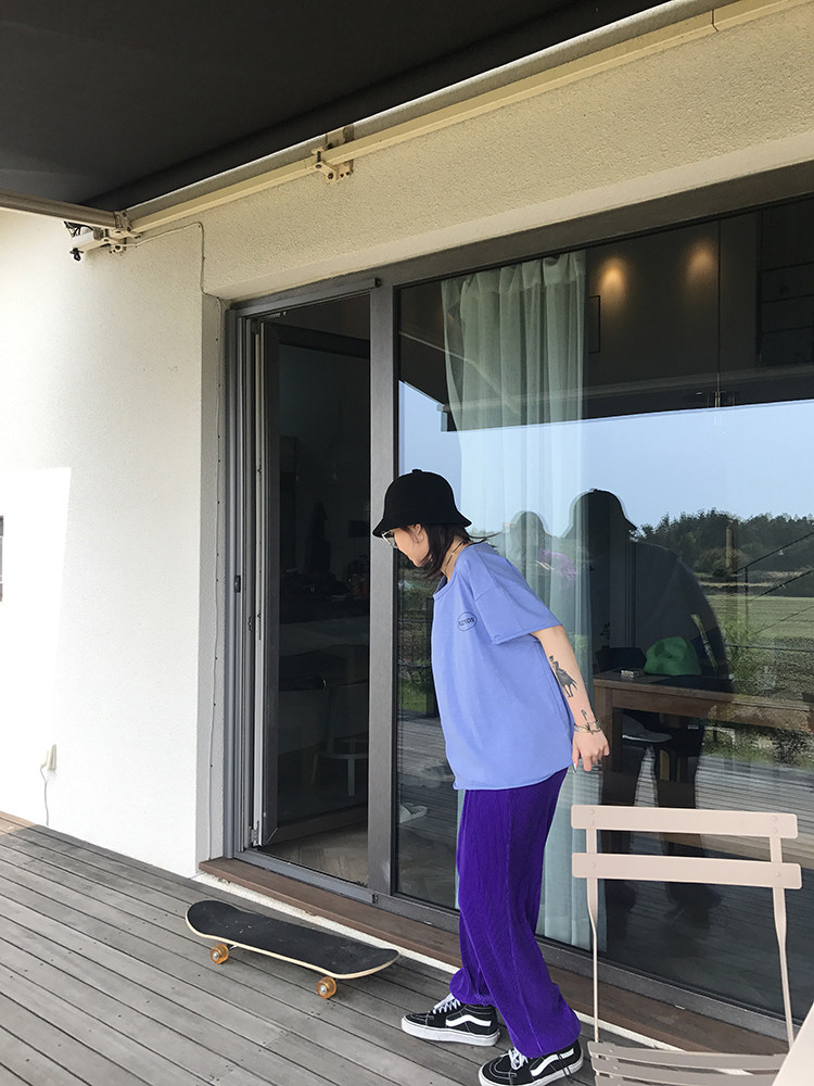 穿起來完全是無(wú)拘無(wú)束 直筒的褲型 下擺有橡筋抽繩可以收起來穿成收腳褲