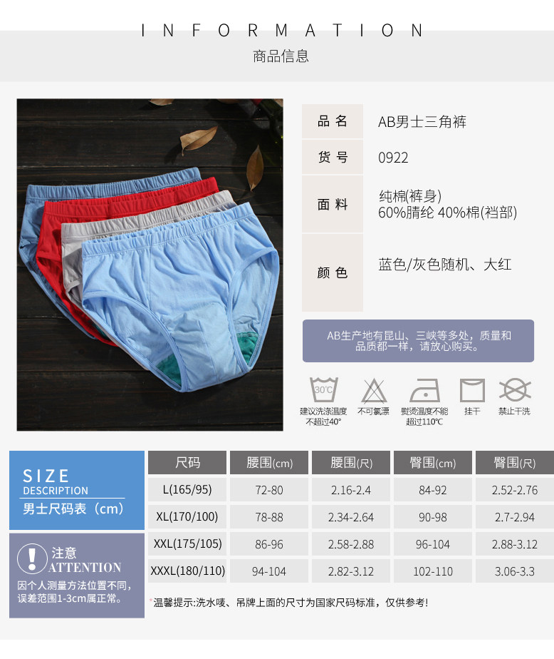 AB內(nèi)衣 男士純棉大碼寬松中高腰三角褲頭中老年短褲 ab內(nèi)褲男0922價(jià)格行情