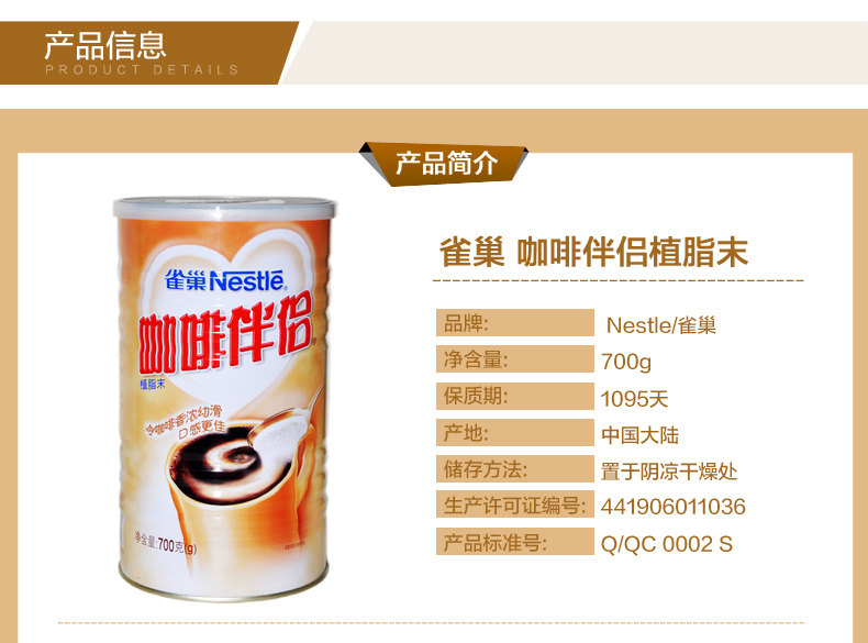 - 產品名稱:Nestle/雀巢咖啡伴侶植脂...