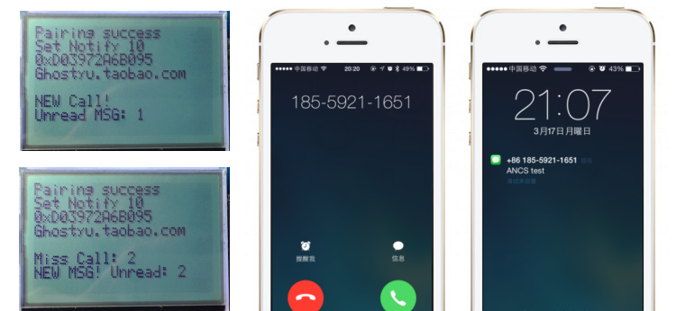 【*】基于蘋果ANCS技術(shù)的智能手環(huán)項目(已發(fā)布,C1套餐以上提供)注: 僅適用于ios7 更高版本需要自己升級協(xié)議棧