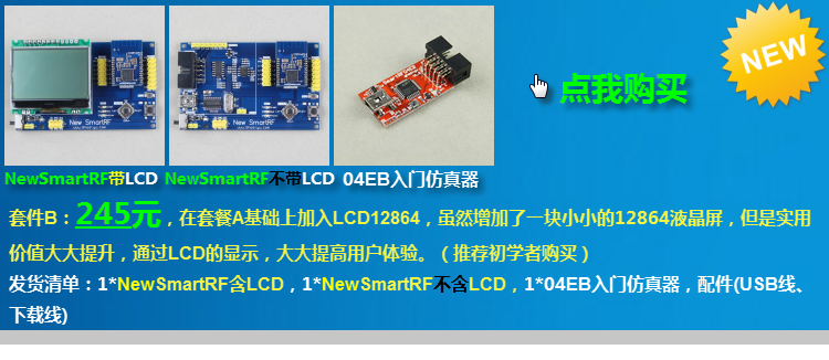 說明:5:其中B~D套餐包括1個帶12864液晶的NewSmartRF,和一個不帶LCD的NewSmartRF。A套餐中均不帶LCD