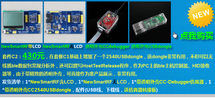 | 序號 | 第二代開發(fā)板(2個) New SmartRF | 04EB仿真器 | 12864液晶屏 | 帶透明外殼 CC-Debugger仿真器 | 帶透明外殼 CC2540USBdongle | 帶三軸加速度計 New Keyfob | 鏈接 |