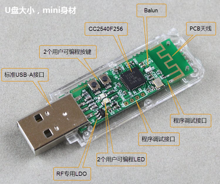 CC2540USBdongle開發(fā)板用來開發(fā)USB通信的相關(guān)應(yīng)用,例如BLE藍牙適配器、HID接收器、或者自己開發(fā)的USB通信程序,在這里有兩個非常常用的功能:1 燒寫HostTestRelease配合PC端的BTool實現(xiàn)很多能BLE很多能調(diào)試器,2 燒寫PacketSniffer實現(xiàn)協(xié)議分析儀,空中抓包。
