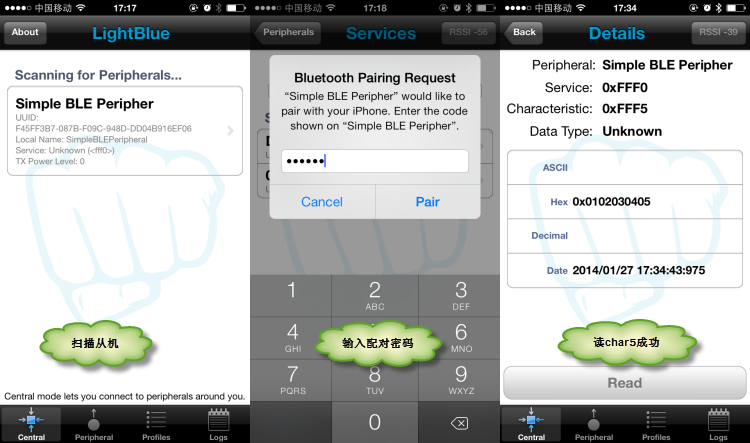 平常的應(yīng)用中,一般是1個主機對應(yīng)1個從機,我們非常新開發(fā)的項目可以實現(xiàn)1個主機同時連接3個從機同時通信,極大的擴展的ble的應(yīng)用范圍