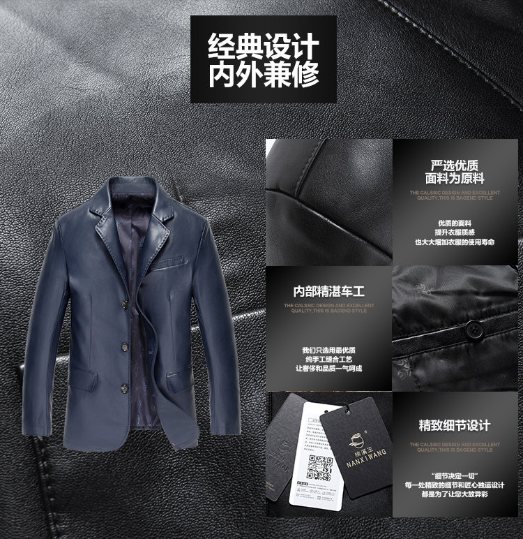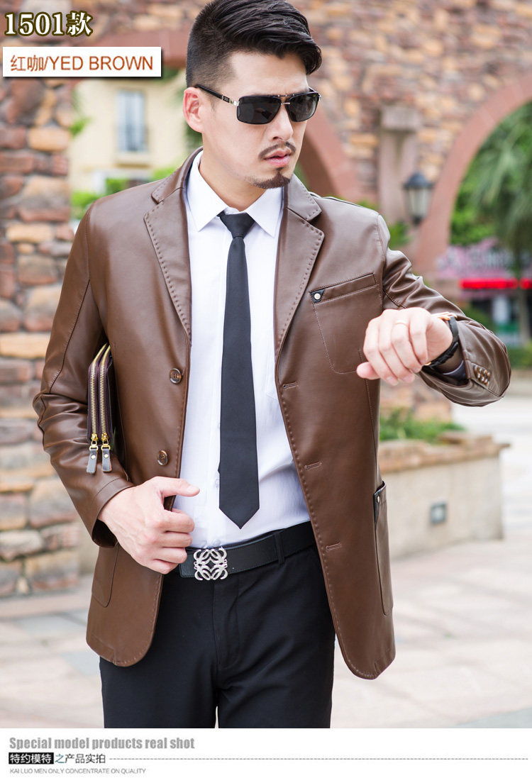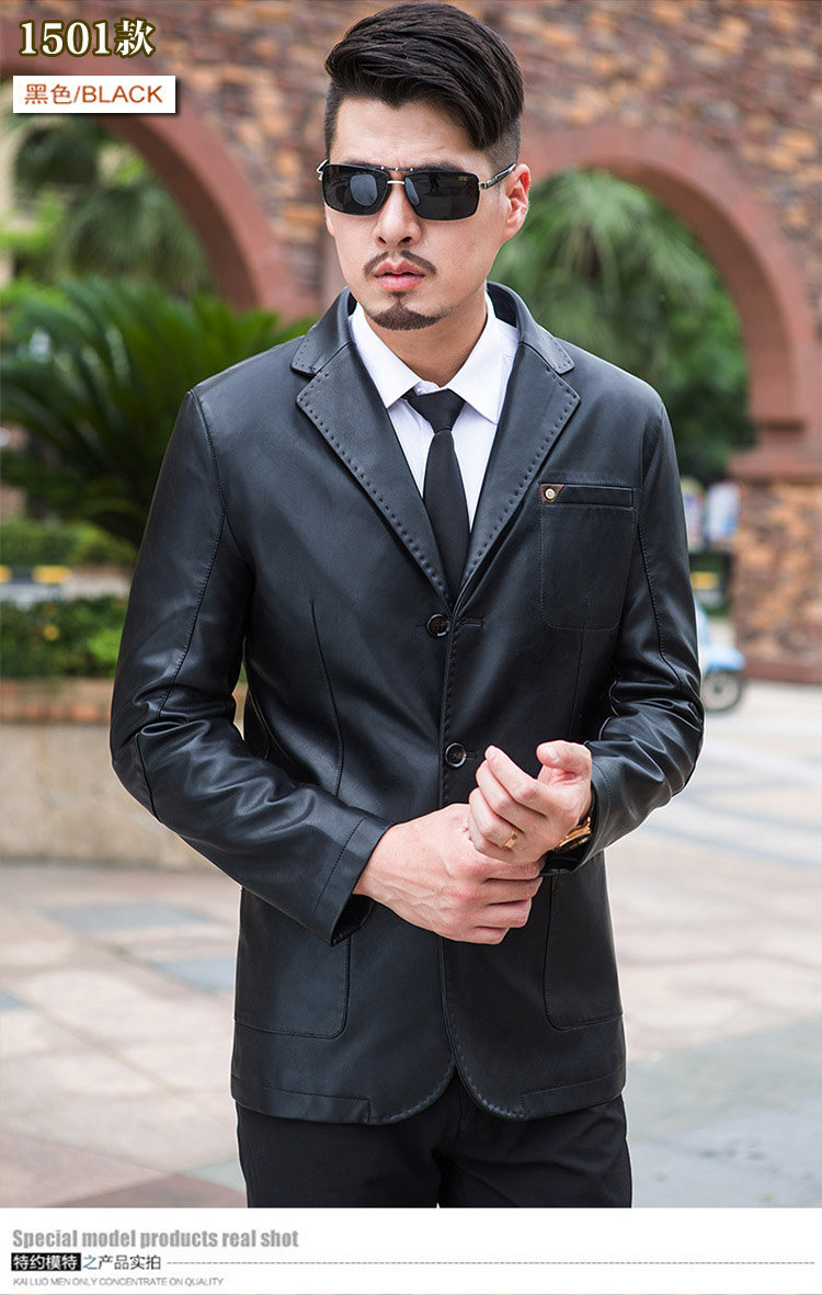 斷碼皮衣男中年休閑皮西服中長款夾克修身外套西裝2017新款 帥氣價格行情
