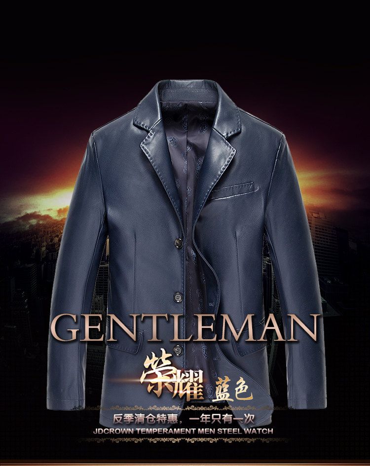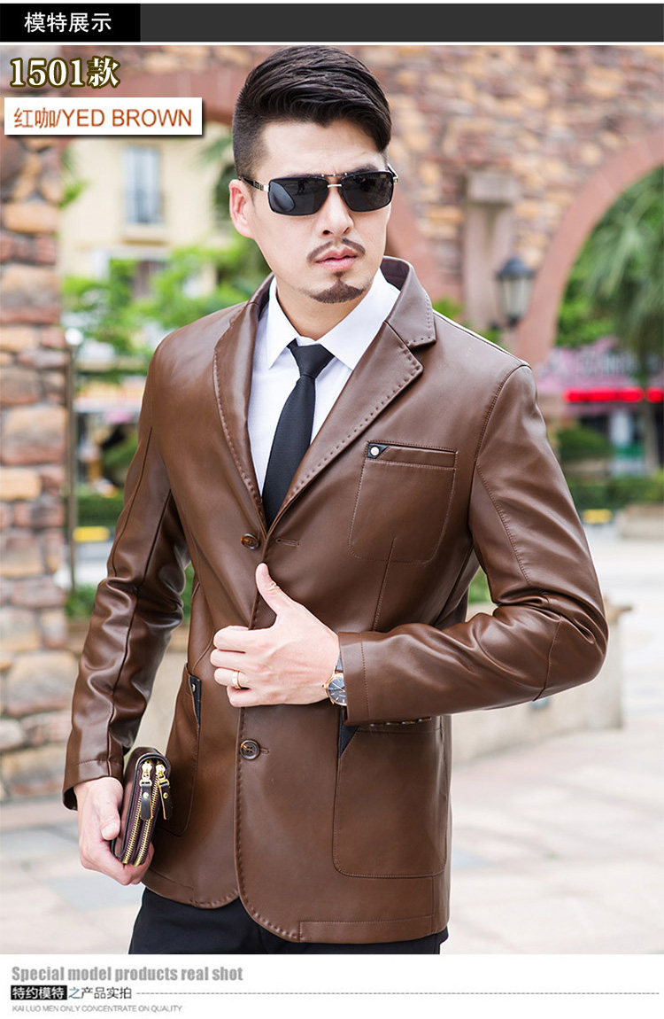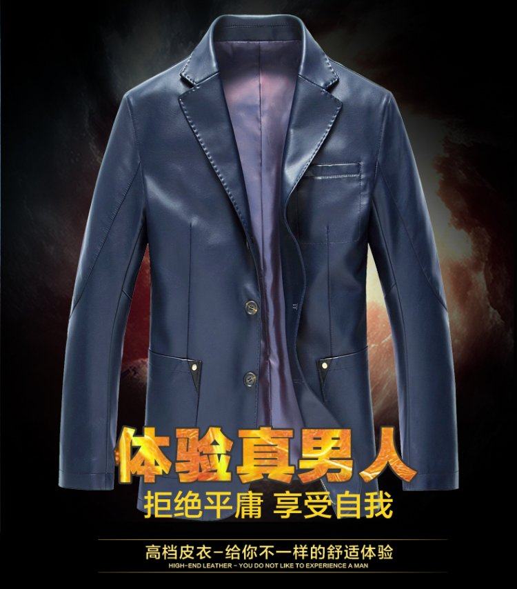 斷碼皮衣男中年休閑皮西服中長款夾克修身外套西裝2017新款 帥氣推廣熱賣行情