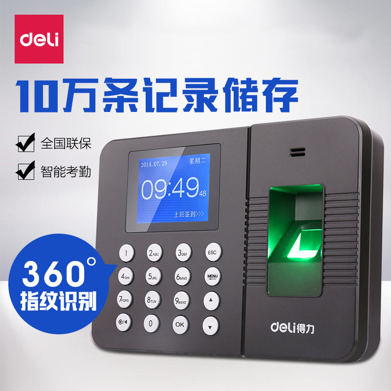 得力指紋式打卡機3960公司食堂上班考勤一體機全套員工簽到打卡器推廣熱賣行情