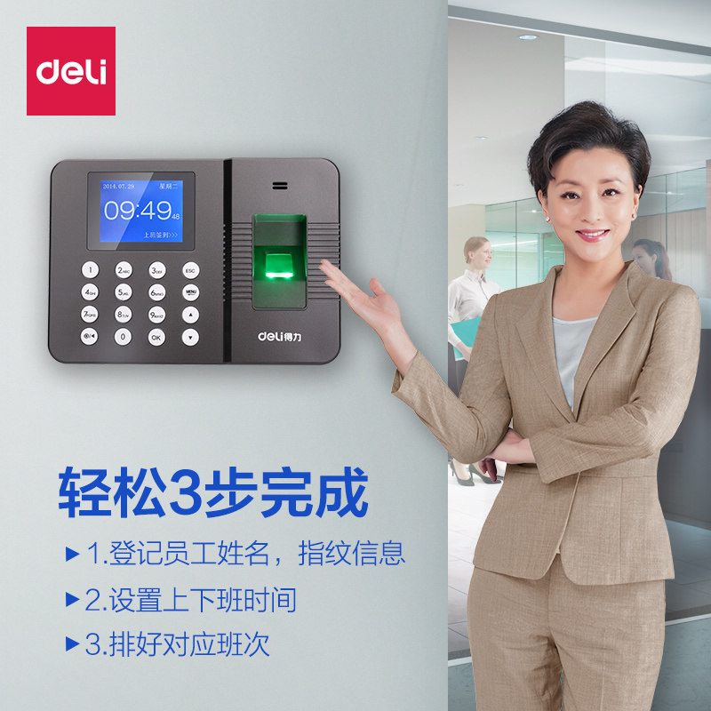 得力指紋式打卡機3960公司食堂上班考勤一體機全套員工簽到打卡器