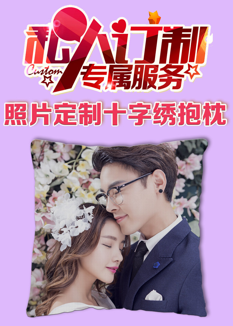 照片十字繡抱枕定制做客廳沙發(fā)臥室diy刺繡情侶簡單自己線繡新款推廣熱賣行情
