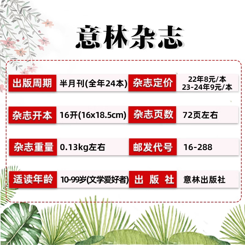 意林雜志2024年1-2期現(xiàn)貨半/全年訂閱2023年1-12月珍藏期刊小學(xué)生初中高中少年版作文素材20周年紀(jì)念官方旗艦店正版合訂本2022過刊推廣熱賣行情