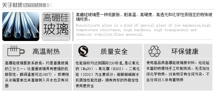 高硼硅玻璃非常大的特點在于具有非常低的熱膨脹系數(shù),也就是對溫度不敏感,沒有一般物體常見的熱脹冷縮,因而具有耐高溫、高熱穩(wěn)定性——耐冷熱沖擊。杯子比較輕薄,和一般的鋼化玻璃是不一樣的。至于耐不耐摔,凡是玻璃都是易碎品,都是不耐摔的哦。
