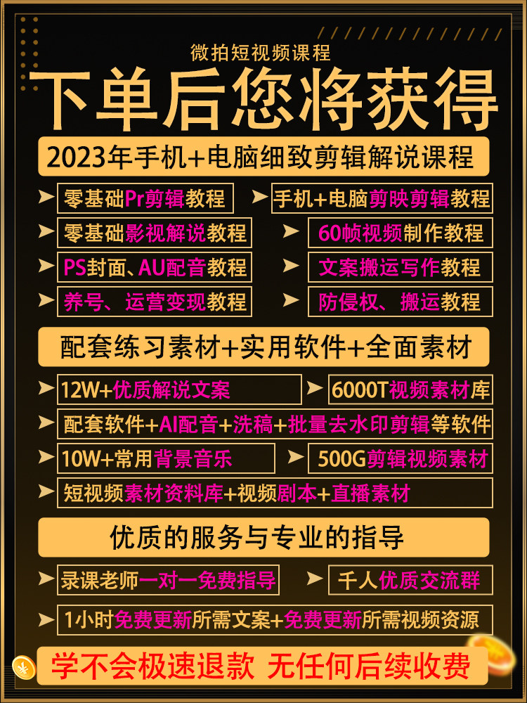 23抖音短視頻電影電視劇解說教程影視剪輯文案中視頻60幀素材價格行情