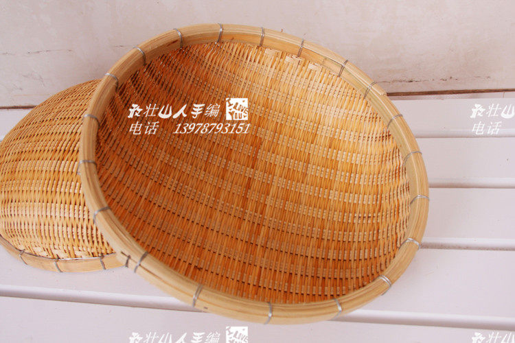 包郵壯族精品竹編制品 竹簸箕 圓簸箕竹篩米篩子火鍋盛菜家用
