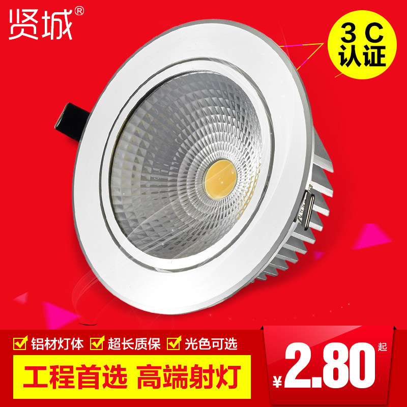 賢城led筒燈3w2.5寸4寸12w5寸18W服裝店射燈天花燈開孔7.5/11公分價(jià)格行情