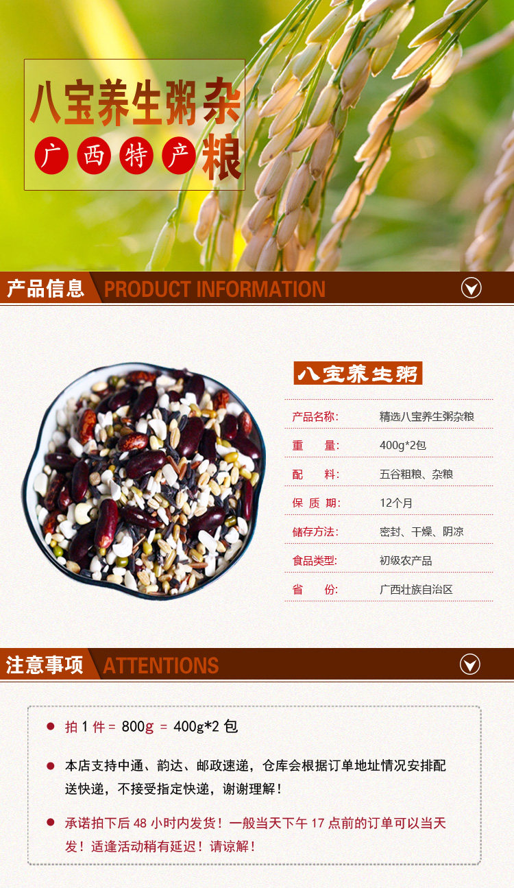 第3件0元 廣西巴馬農(nóng)家八寶粥米400g*2袋五谷雜糧粗糧包郵 煮40碗推廣熱賣行情