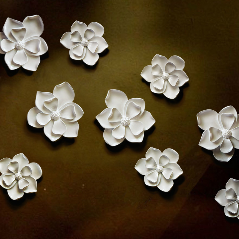 創(chuàng)意田園陶瓷手捏花壁飾壁掛立體墻飾客廳電視背景墻上裝飾品掛件價格行情