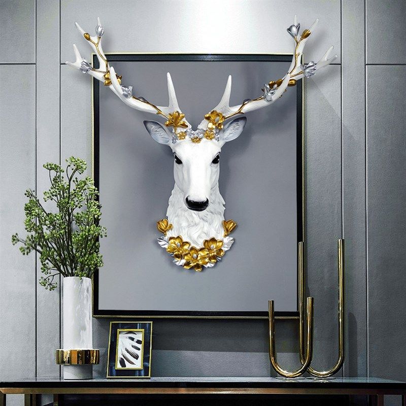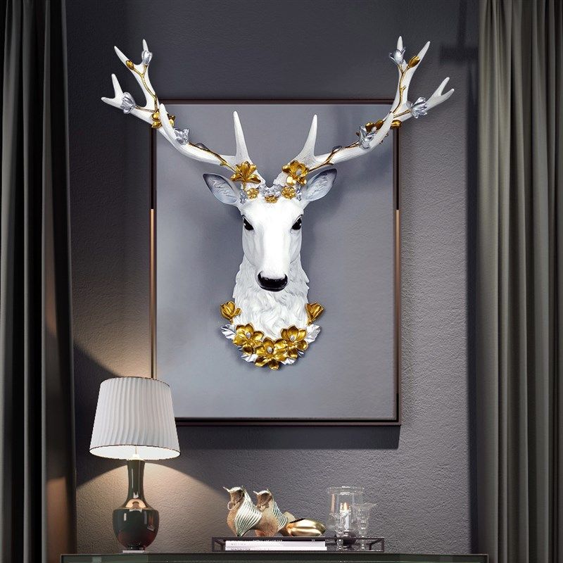 招財(cái)鹿頭墻面裝飾壁掛客廳電視背景墻上掛件創(chuàng)意玄關(guān)輕奢壁飾歐式
