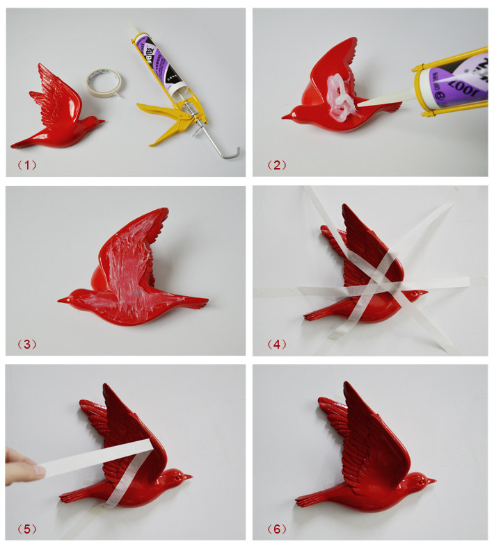 安裝上墻方法: 1.準備美紋膠,玻璃膠若干 2.將玻璃膠打在小鳥的背面均衡抹平 3.先將背部抹好玻璃膠的小鳥輕輕的貼在設(shè)定好的位置,然后慢慢壓緊,再將美紋膠貼在小鳥正面和墻壁相連固定。 4.等待數(shù)小時待玻璃膠干了之后,撕下美紋膠,這樣就完成啦。 玻璃膠干后拆下來基本不會影響墻壁美觀