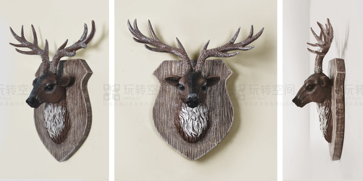 歐式創(chuàng)意動(dòng)物頭壁飾掛飾鹿頭鹿角壁掛家居客廳酒吧墻壁裝飾品掛件