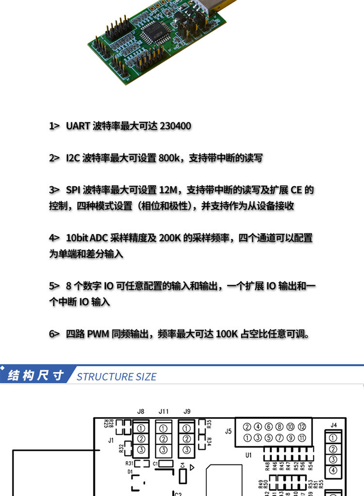 1>USB轉(zhuǎn)UART,I2C,SPI(帶4路ADC,4路PWM,8數(shù)字IO)