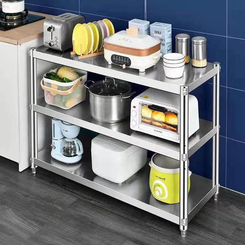 廚房放萊架置物架落地不銹鋼三層家用微波爐烤箱廚柜收儲(chǔ)物架子鍋價(jià)格行情