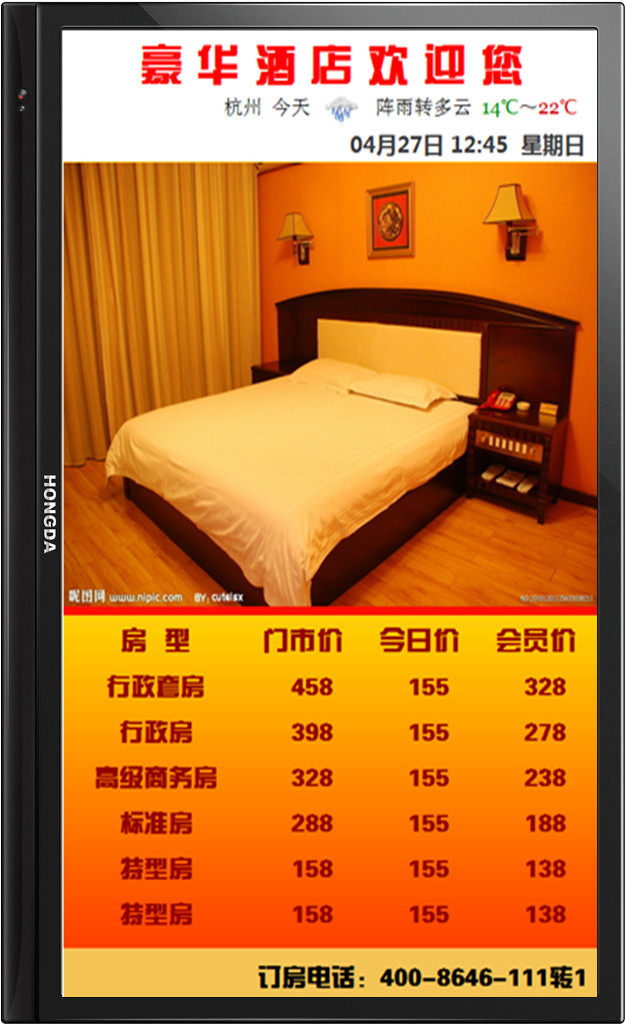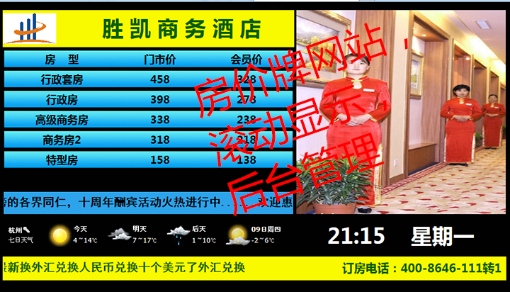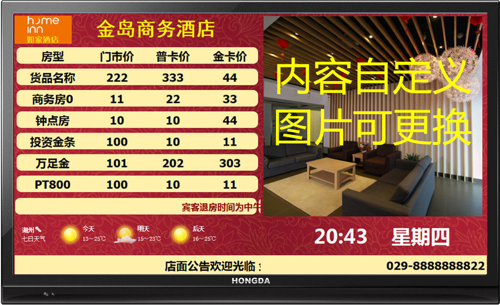 酒店房價牌軟件 多模板 圖片播放 價目顯示屏很長時間使用后臺定制