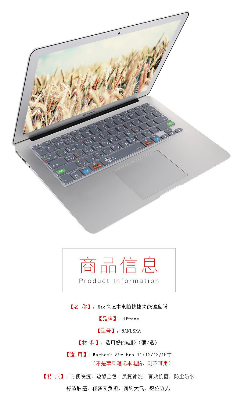 蘋果電腦12寸macbook Air13 11鍵盤膜Mac保護(hù)膜pro15筆記本快捷鍵.推廣熱賣行情