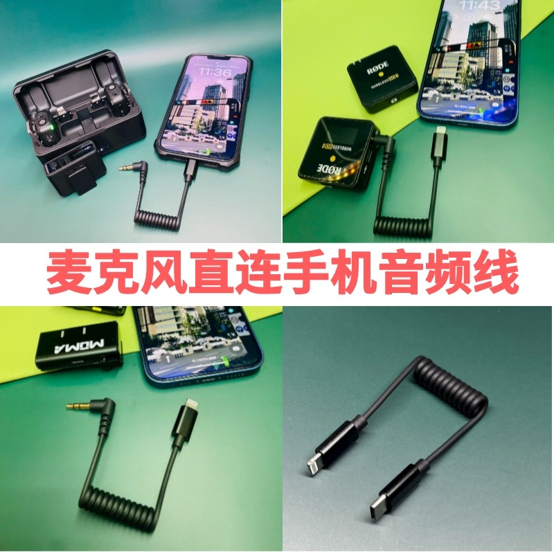 適用羅德麥克風(fēng)連接線蘋果手機(jī)直連TypeC轉(zhuǎn)接頭TRS轉(zhuǎn)3.5mm音頻線